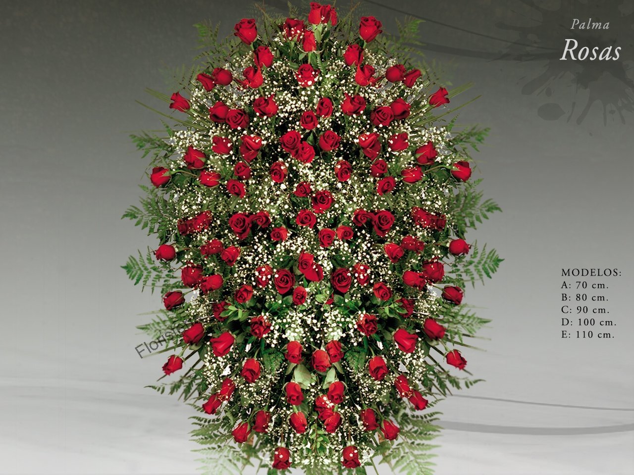 Elegante palma elaborada con flor natural. Composición con rosas rojas y gipsofila paniculata.